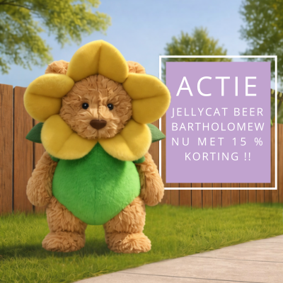 De bekendste knuffel van Jellycat: Bartholomew . Speciaal om de lente te vieren nu tijdelijk in de actie in zijn lieve bloemenpakje. Maak het extra leuk met ons mooiste houten speelgoed en laat het spelen beginnen!