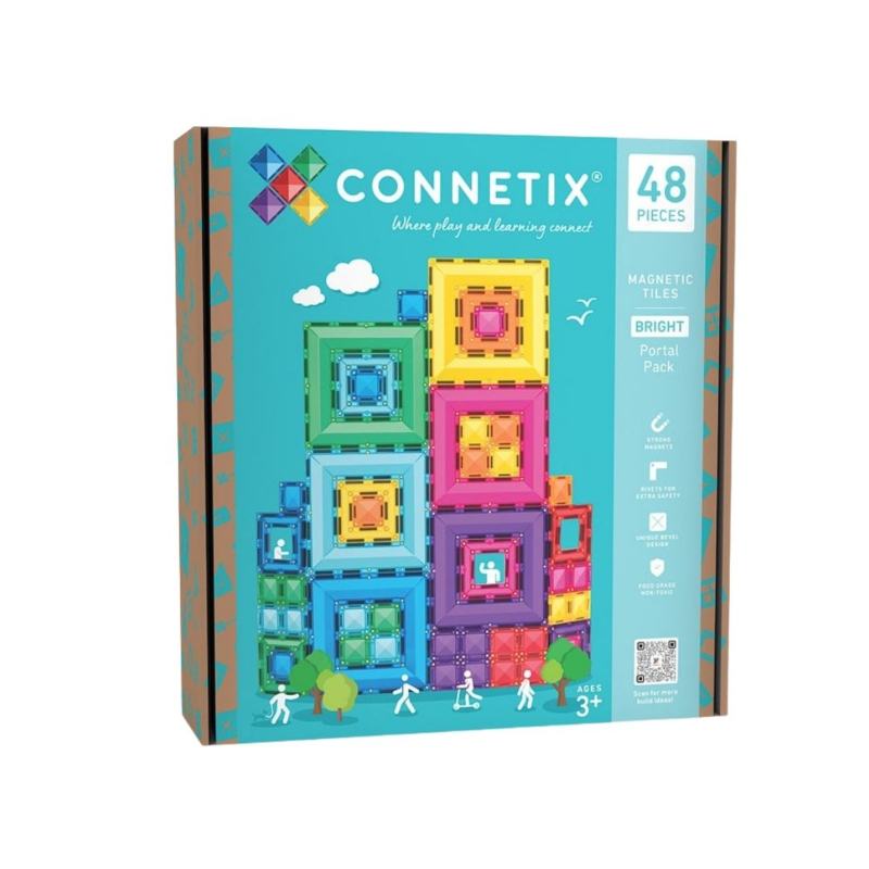 Ontdek de magie van de Connetix Portal Pack! Met drie formaten vierkanten in acht heldere kleuren neem je open ended play naar een hoger niveau.