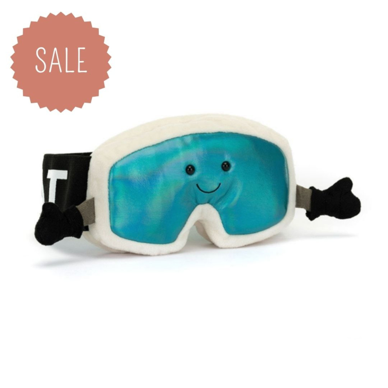 Amuseables sports ski goggles van Jellycat is een zachte knuffel vermomd als ski-bril! Na een stevige dag op de skipistes vindt Amuseables Sports Ski Goggles niets fijner dan te knuffelen. Gelukkig is hij erg zacht en nodigt hij uit tot knuffels, want heb jij zijn lieve gezichtje en grappige bungelende beentjes al gezien?