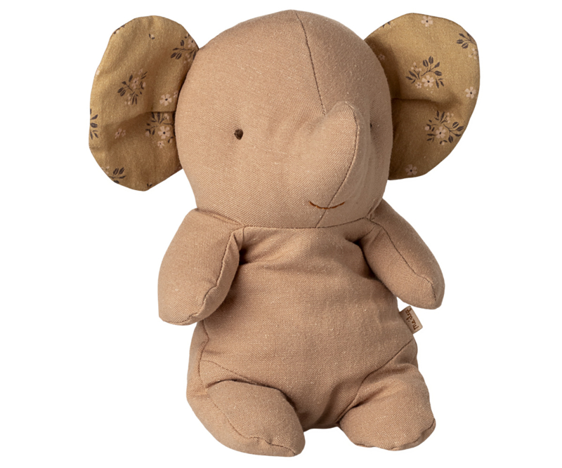 Ontmoet de Maileg knuffel Olifant uit de Safari Friends collectie. Deze lieve olifant in een warm roze kleur is gemaakt van superzachte stof en heeft een schattig bloemetjespatroon aan de binnenkant van haar oren. Dankzij de verzwaarde vulling kan zij zelfstandig zitten en wacht ze geduldig op een dikke knuffel.