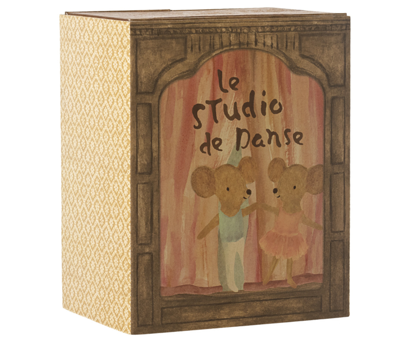 De balletmuizen in dansstudio van het Deense merk Maileg nodigen uit om een magische wereld van dans, verhalen en fantasie te ontdekken. Deze set bestaat uit een stevige kartonnen doos die zowel een dansstudio als een knus muizenhuis vormt. Twee schattige muizen in hun prachtige balletoutfits zorgen voor urenlang speel- en dansplezier.