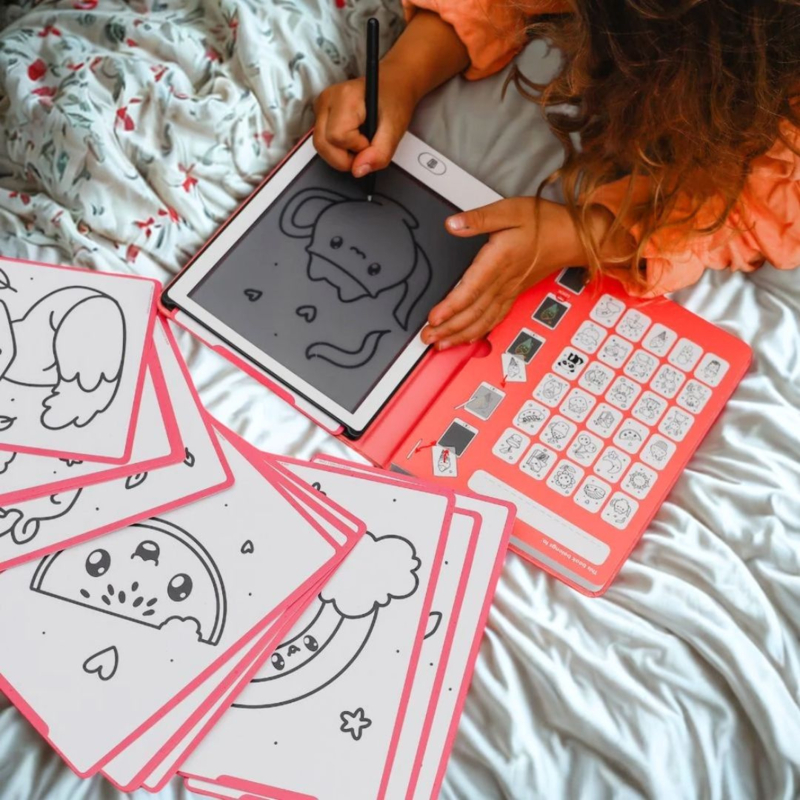 Het lichte ontwerp past makkelijk in elke tas en is perfect voor onderweg. Dankzij het 8,2 LCD-scherm kan je kind eindeloos tekenen, met één druk op de knop weer wissen of de tekening tijdelijk vergrendelen om op te slaan.
