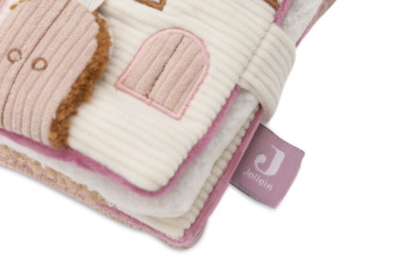 Dit zachte activiteitenboekje uit de flower fairies collectie is speciaal ontworpen om de zintuigen van je baby te stimuleren. Het boekje heeft vier pagina’s met lieve dieren zoals een konijn, vogel, eend en zwaan. De knisperende materialen nodigen uit om te voelen en te ontdekken. Daarnaast maken een spiegeltje en kleine boompjes het spelen nog interessanter.