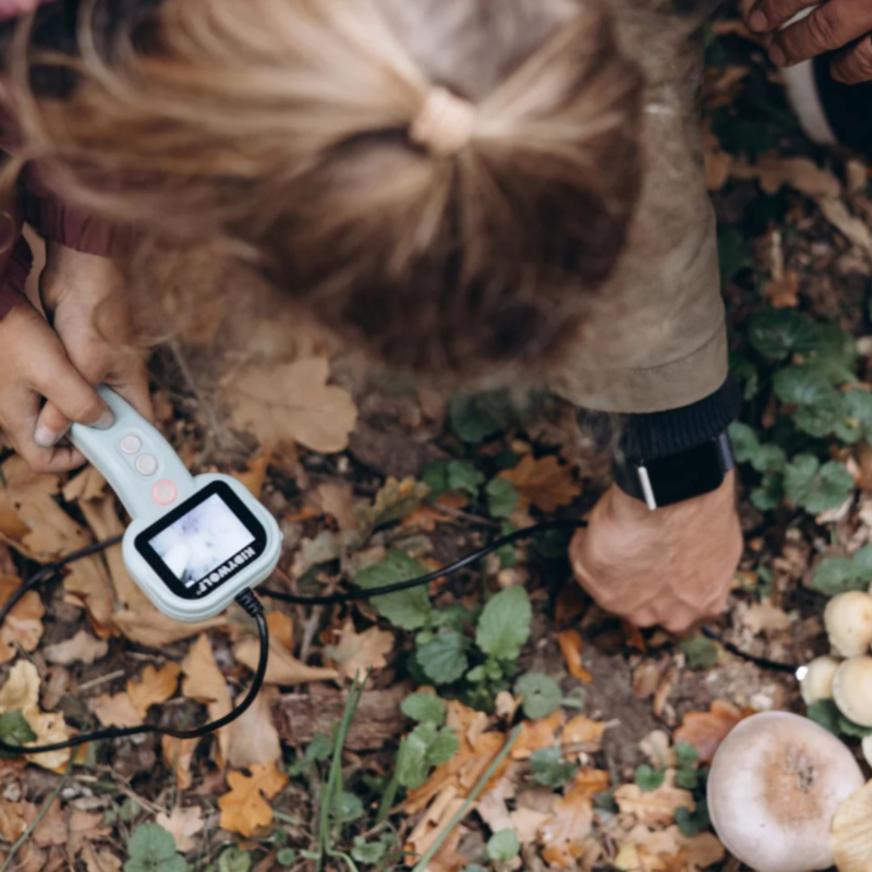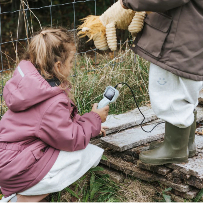 Met de KidyExplore natuurcamera van Kidywolf verandert elke struik, holte of grasspriet in een wereld vol geheimen. Deze natuurcamera is speciaal ontworpen voor nieuwsgierige kinderen die willen ontdekken wat er zich buiten hun zicht bevindt. Dankzij de soepele kabel van een meter lang en de camera aan het uiteinde kunnen kids op onderzoek uit in smalle spleten, onder stenen of in hoge planten. Allemaal rechtstreeks zichtbaar op het ingebouwde kleurenscherm.