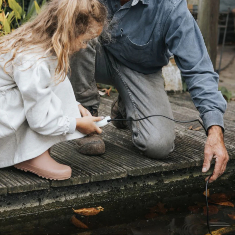 Het heldere LED-lampje (met drie lichtstanden) zorgt ervoor dat kinderen zelfs in donkere hoekjes alles goed kunnen bekijken. De waterbestendige kabel maakt het mogelijk om ook vochtige of modderige plekjes veilig te onderzoeken.