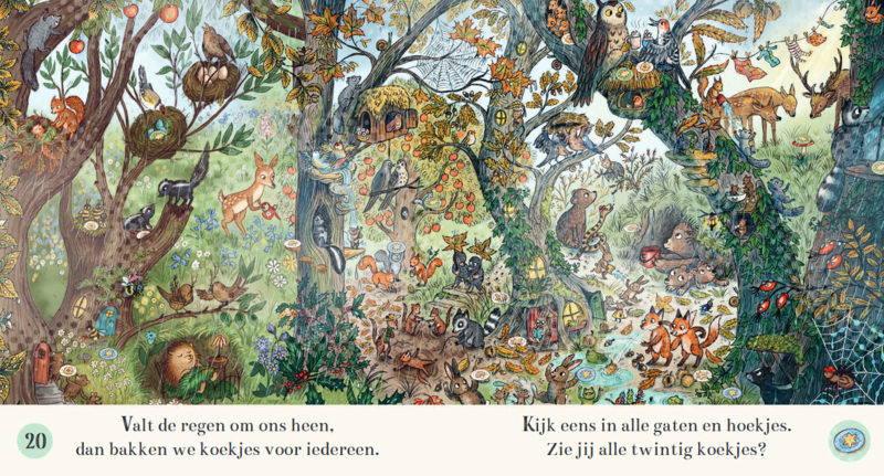 Terwijl het rijmende verhaal je meeneemt door het bos, kun je samen maar liefst honderd kleine dingen zoeken en tellen. Dat maakt voorlezen niet alleen gezellig, maar ook interactief en speels.