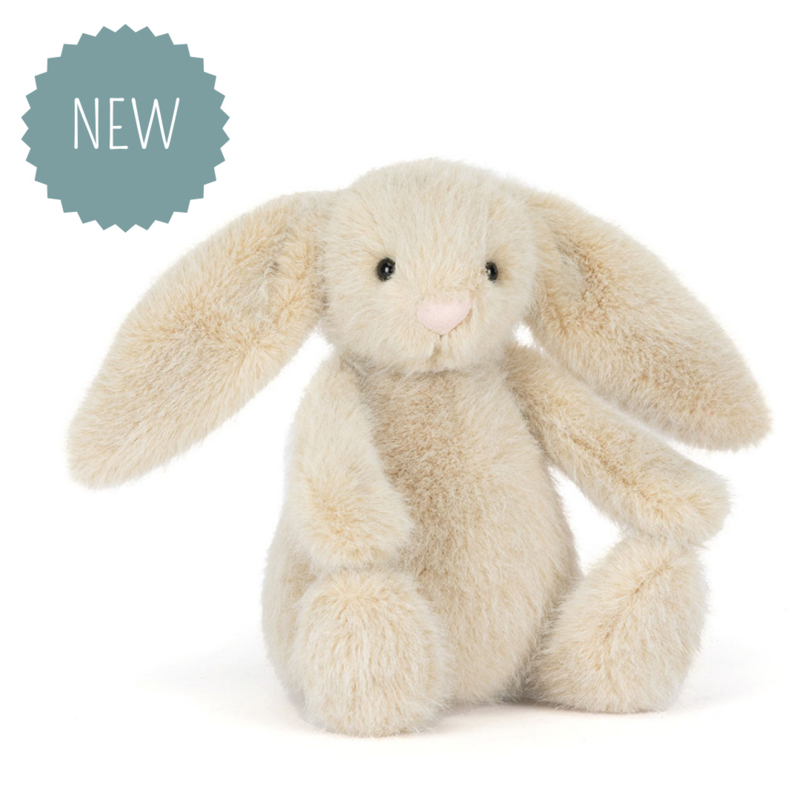 Wheat Flufflet Bunny is een onweerstaanbaar lieve knuffel uit de Bashful serie van Jellycat, een collectie die bekendstaat om haar uitzonderlijke zachtheid. Met haar zachte vacht, schattige snoetje en lange hangoortjes die graag luisteren naar verhalen, wordt ze al snel een favoriet knuffelvriendje.