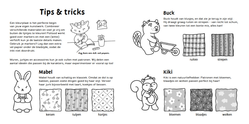 Pak je kleurpotloden, stiften of fineliners en geniet van de warmte en eenvoud van deze charmante kleurwereld. Ben je bang dat sommige stiften of pennen doordrukken? Leg dan een (dikker) vel papier onder de kleurplaat om eventuele ongelukjes je voorkomen.