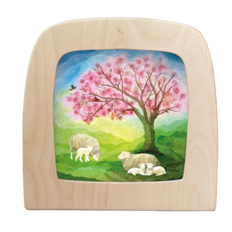 Deze vrolijke toverplaat met een illustratie van schapen met hun lammetjes is perfect voor de toverlamp en ideaal om in de lente te gebruiken.