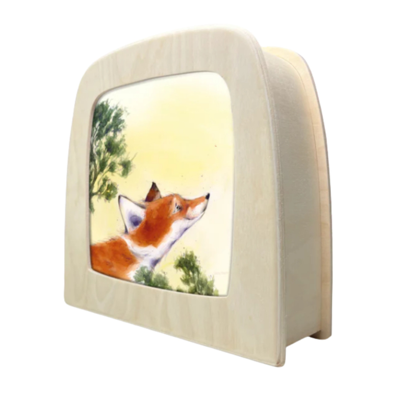 Deze sfeervolle toverplaat met een nieuwsgierige vos is perfect voor de toverlamp!