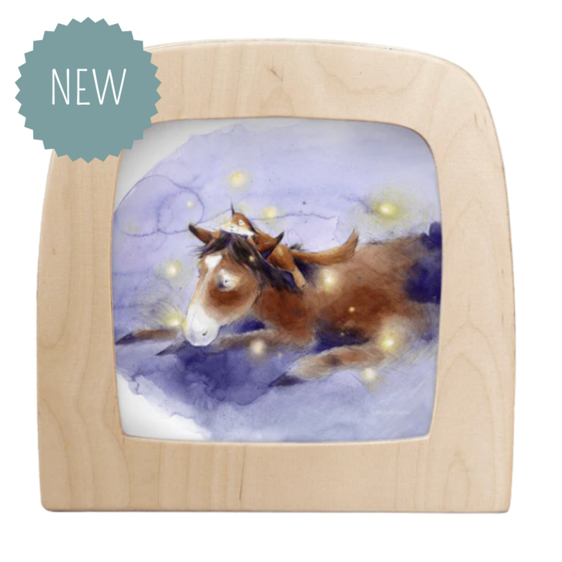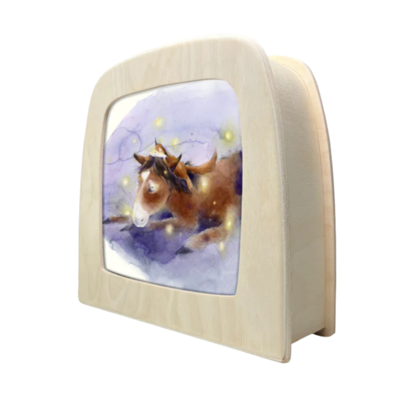 Deze sfeervolle toverplaat met een paard omringt door vuurvliegjes is perfect voor de toverlamp en ideaal voor kinderen die dol zijn op paarden!