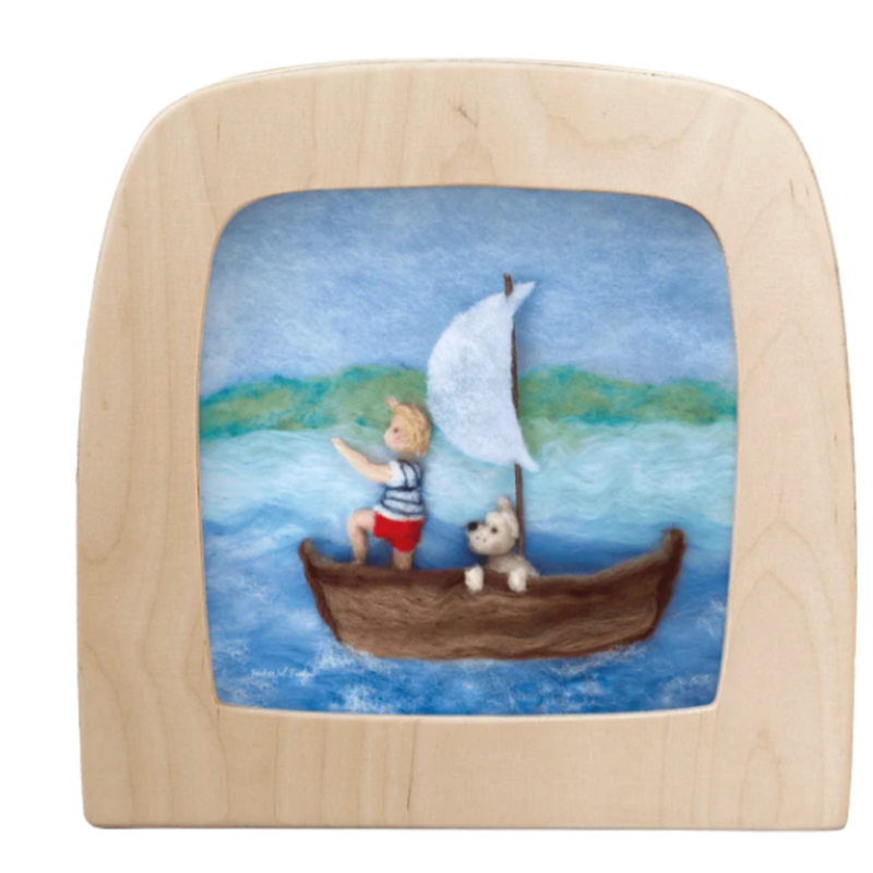 Op deze Toverlux plaat schittert een prachtige illustratie van een zeilbootje met de wind in de zeilen. De kleine kapitein samen met zijn hondje gaan op avontuur!