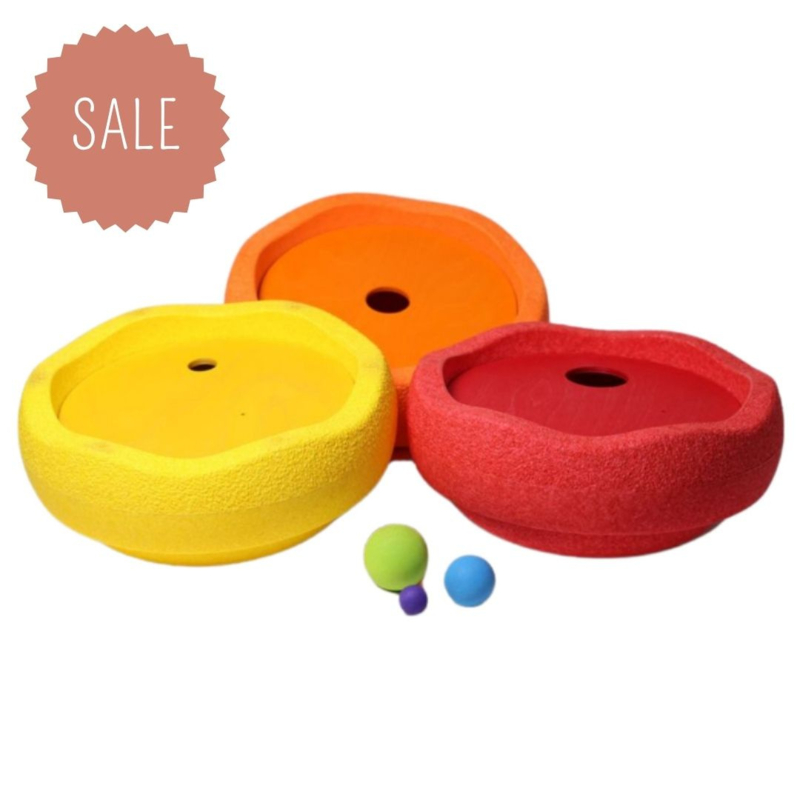 Grimm’s en Stapelstein zijn samen aan de slag gegaan en hebben deze fantastische Rolling discs set warm classic ontworpen. Met deze set wordt spelen nog leuker! Hij bevat drie schijven in de kleuren geel, oranje en rood en elk met gaten in verschillende groottes. Ook zitten er drie houten ballen bij, die verschillen in kleur en formaat.